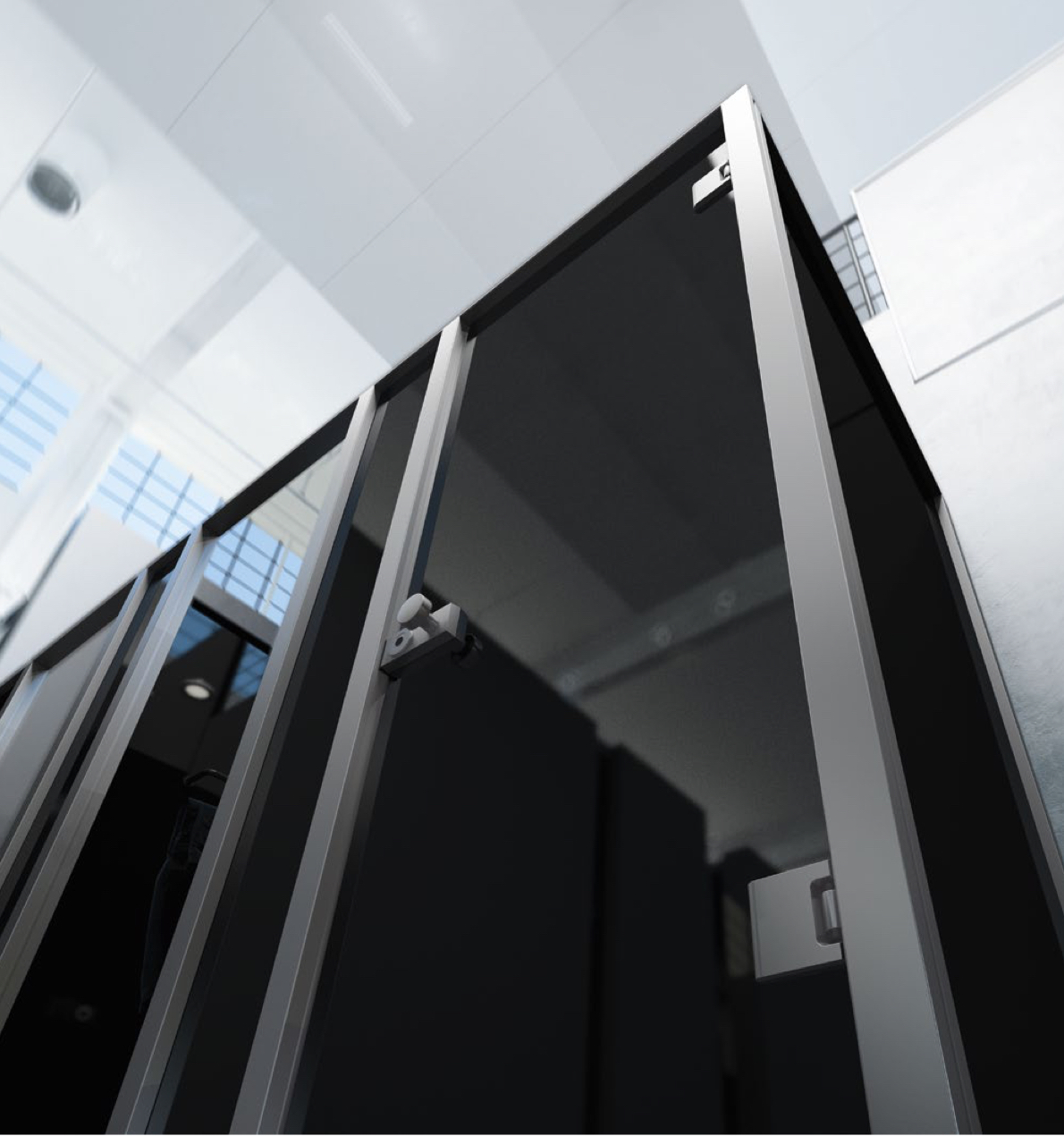 Realisieren Sie mit markanten Aluminium-Profilen, hochwertigen Beschlägen sowie Trennelementen aus Glas (ESG plan oder VSG aus 2 x ESG) oder HPL (Hochdrucklaminatplatten) individuelle, langlebige Einzelkabinen oder Reihen- anlagen nach Ihren Vorstel- lungen.